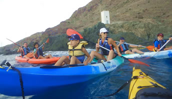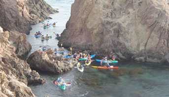 En ellas os proponemos excursiones en kayak guiadas muy divertidas, fáciles, didácticas e idóneas para todos los públicos y edades (a partir de 3 años) y condiciones físicas; !Solamente es imprescindible saber nadar y tener ganas de pasárselo bien!, ya que a los clientes se les da un cursillo de iniciación al paleo (maniobras básicas para conducir la piragua) y de seguridad en kayak de mar.