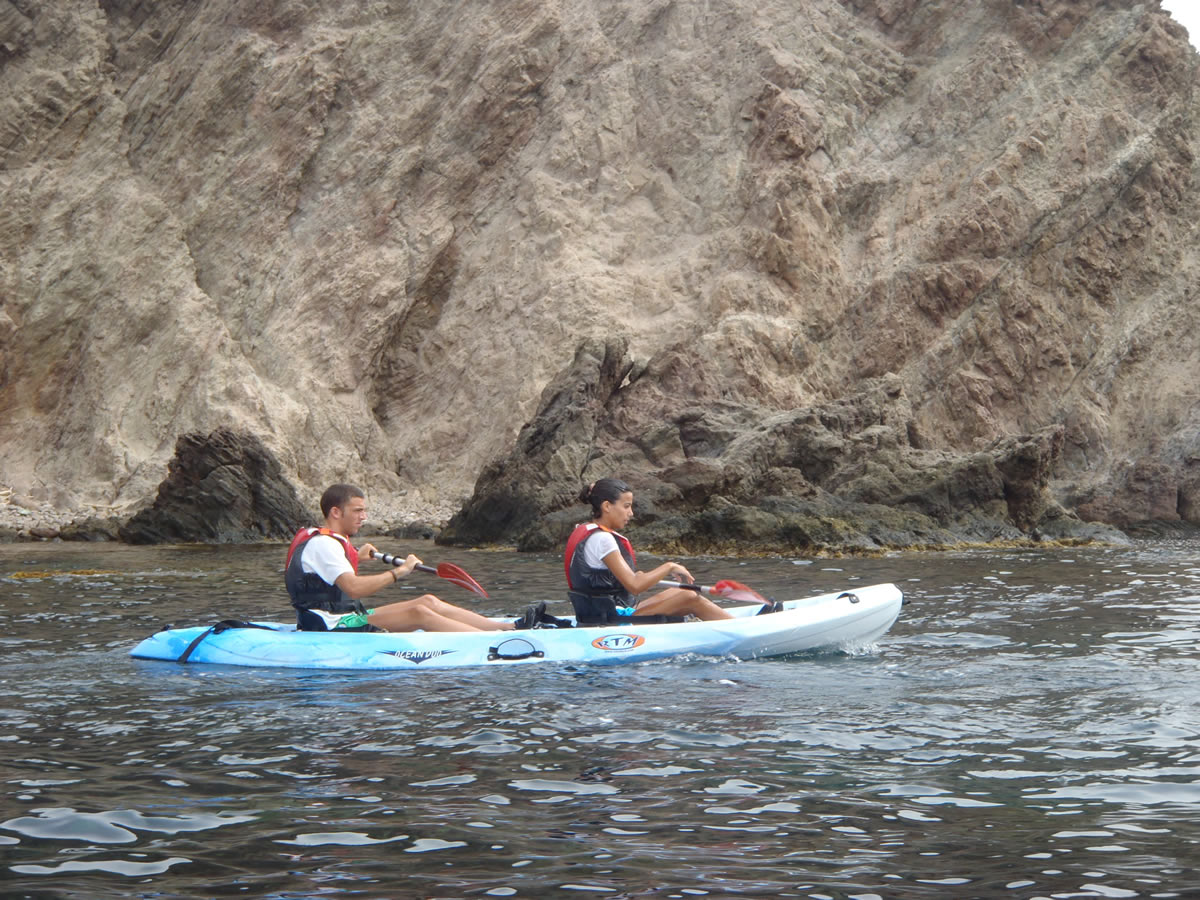 Se trata de ofrecer una actividad de conducción del kayak en el medio natural marino no muy exigente pero si muy fácil y divertida, donde vamos a aprender aspectos de la biología, geología, botánica y etnografía visitando lugares maravillosos e idílicos del Parque Natural Marítimo Terrestre del Cabo de Gata-Níjar. Y también haremos paradas en calas vírgenes para realizar snorkel dentro de las Reservas Marinas del Parque observando sus fondos cristalinos, la rica y abundante fauna y flora marina. La ruta incluye: